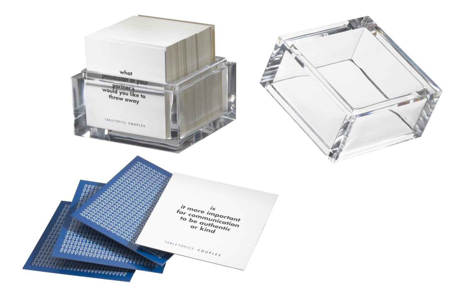 Spark meaningful conversations and strengthen your bond with TableTopics: Couples! This fun and engaging conversation starter game is designed to help couples deepen their connection through thought-provoking and lighthearted questions. Whether you're on a date night, road trip, or enjoying a cozy evening at home, this game encourages insightful discussions, laughter, and new discoveries about each other.