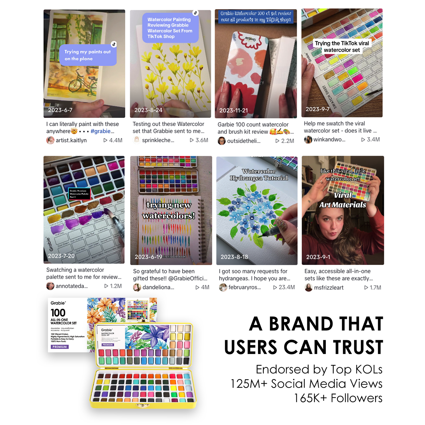 Endless Color Options - Enjoy a stunning selection of 100 vibrant shades, providing limitless choices for every artistic project and allowing for unique color combinations and gradients. Superior Paint Quality - Formulated with high-quality, modern pigments, these watercolors deliver rich pigmentation, excellent transparency, and optimal performance for a true-to-color experience. All-In-One Set - This comprehensive set includes everything you need to start painting: three water brush pens for easy application, a drawing pencil for sketching, a natural sponge for cleaning your brushes, and a swatch sheet for color testing. Versatile for All Styles - Perfect for various artistic styles, from landscapes to portraits and abstract work, this set allows you to experiment with techniques like wet-on-wet and wet-on-dry, making it an ideal companion for every artist.