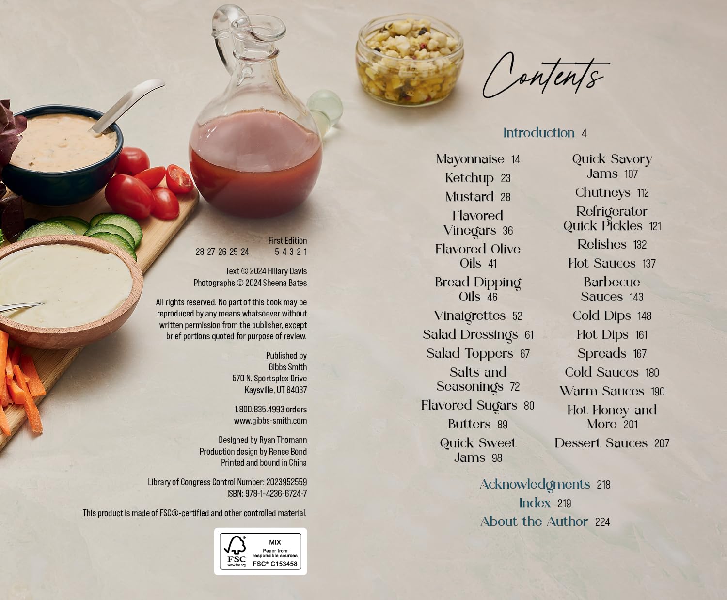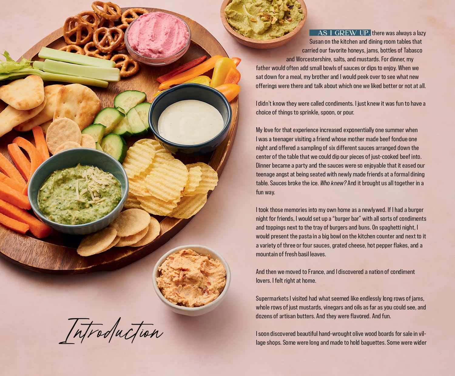 You will find creative and easy recipes for mayonnaises, ketchups, mustards, vinegars, flavored oils, vinaigrettes, dressings, toppers, salts and seasonings, flavored sugars, butters, jams, chutneys, pickles, relishes, sauces, dips, and spreads that take your boards and dishes to tasty new levels.