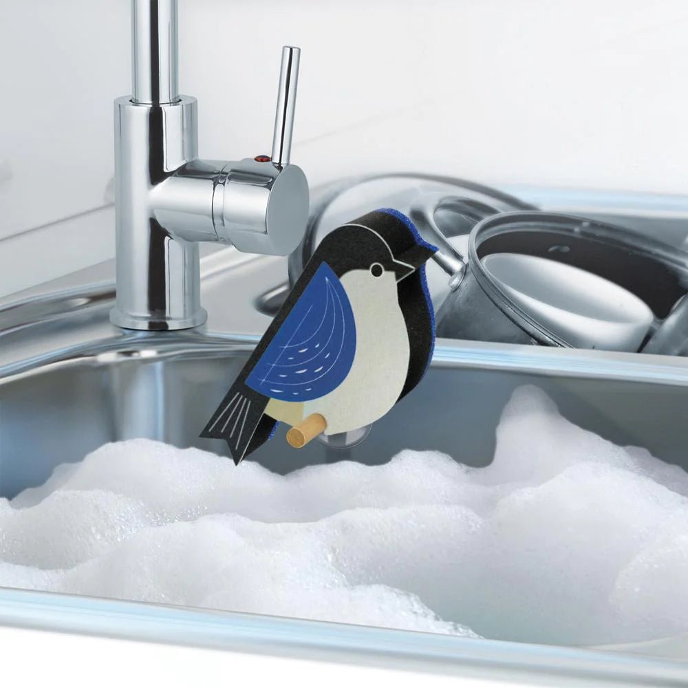 Dishes are for the birds, so it's time to let these fly guys help out. Charming sponges with a modern design, Fred's Perched conveniently sit on a "branch", suctioned to your sink or tile backsplash, while they dry out. Each set contains 4 multi-layer sponges, 1 suction cup, and 1 wooden perch.