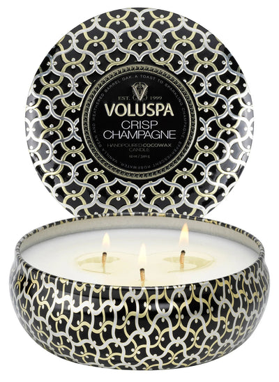 Holiday Crushed Candy Cane | 3 Wick Tin Candle Candles Voluspa  Paper Skyscraper Gift Shop Charlotte