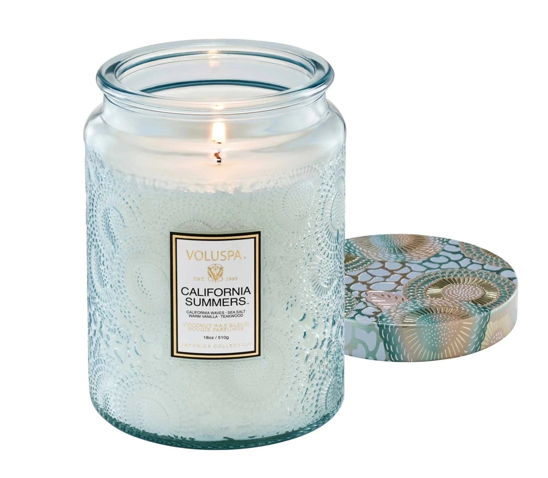 Plunge into the blue horizon and escape into another realm, where worries are reduced to coasting on hypnotic rolling waves. A salty ocean breeze tickles the skin as the sun reaches its peak height of the day, leaving you to bask in a teakwood sling chair, lathered in a tonic of warm vanilla and coconut milk. Welcome in the rising tides to wash away the cares of the day. Voluspa invites you to take the scenic route, so you may always return for California Summers.